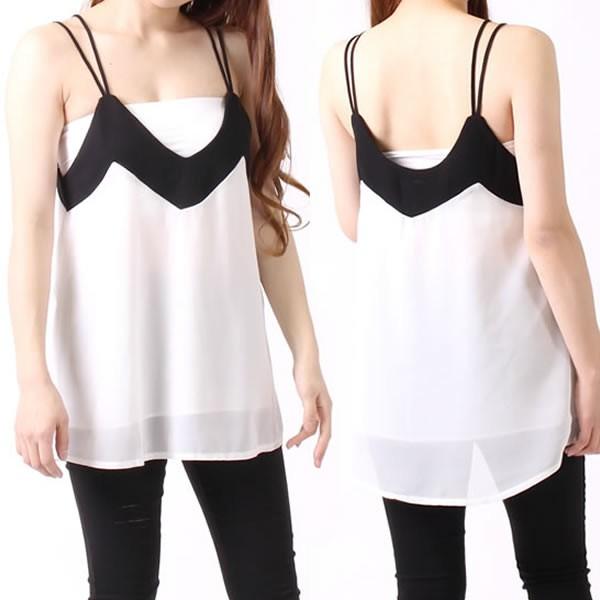 | 訳あり セール バイカラー シフォン キャミソール トップス ブラック ホワイト 無地 【キャミソール レディース 女性 黒 ブラック ロンデルブラック セクシー モノトーン 袖なし ノースリーブ ワケあり アウトレット sale】 | |