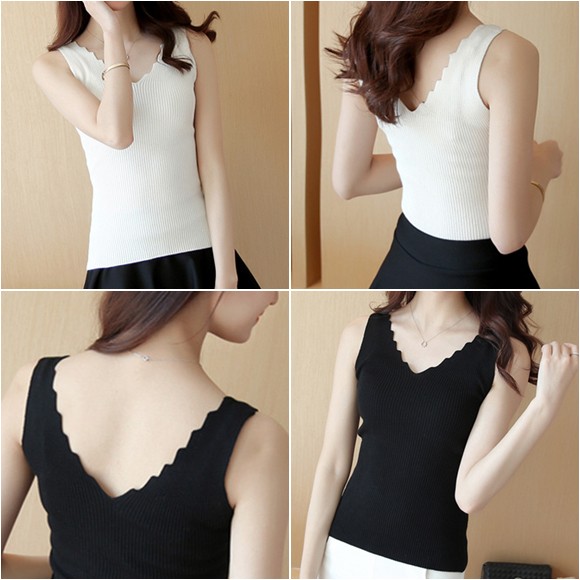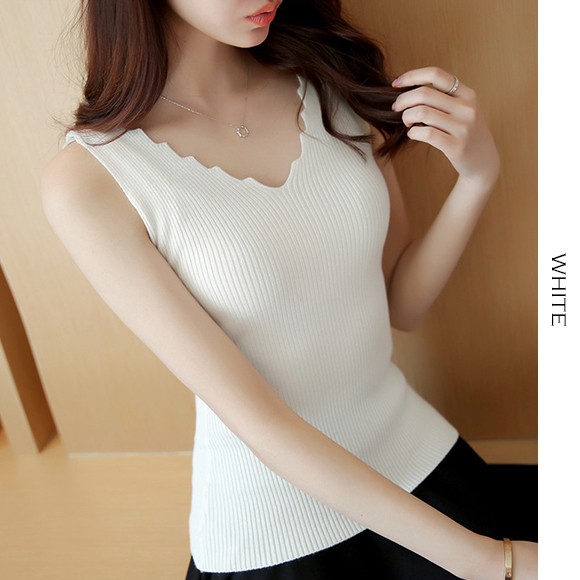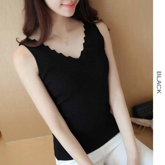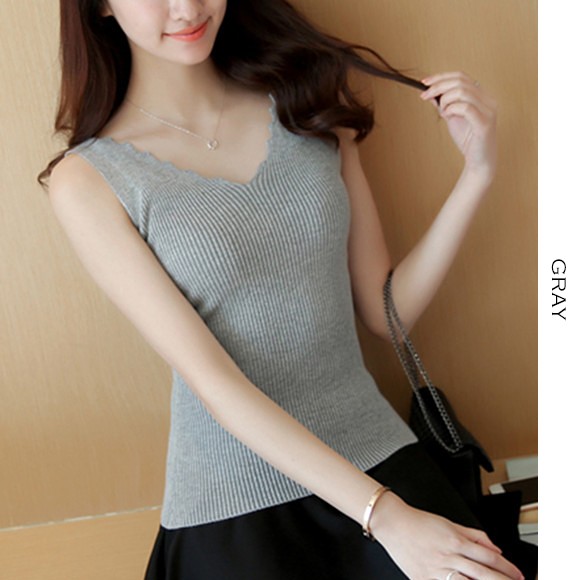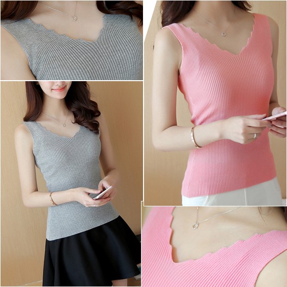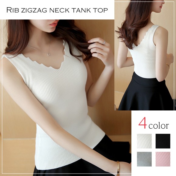 リブ素材のシンプルなタンクトップで使いやすい♪