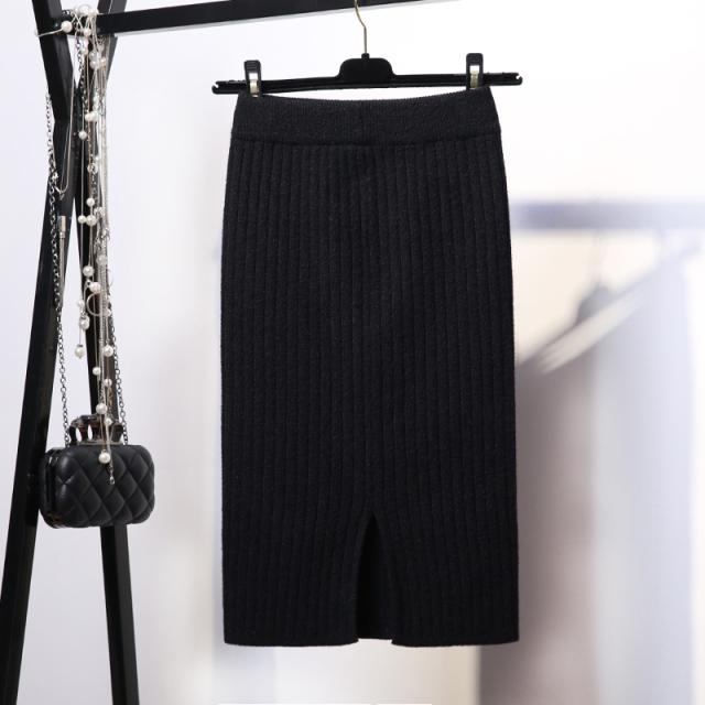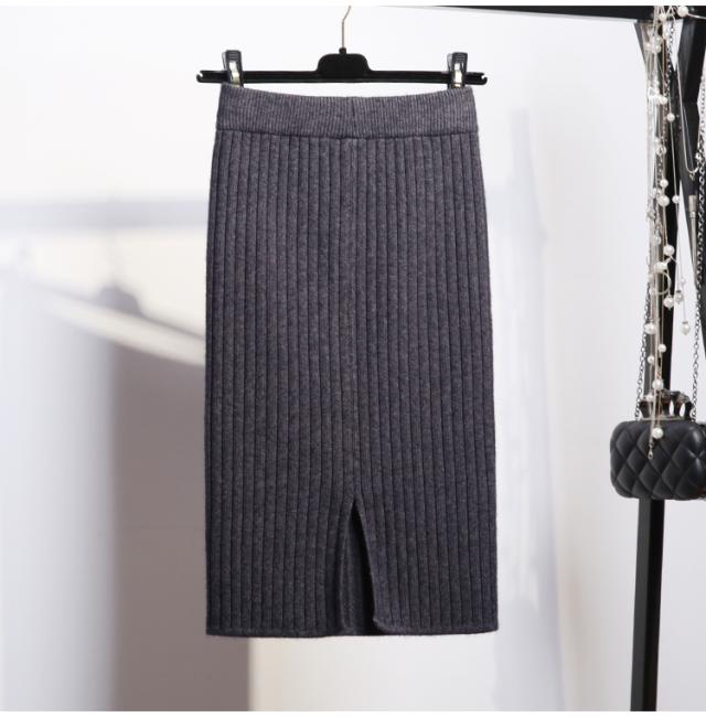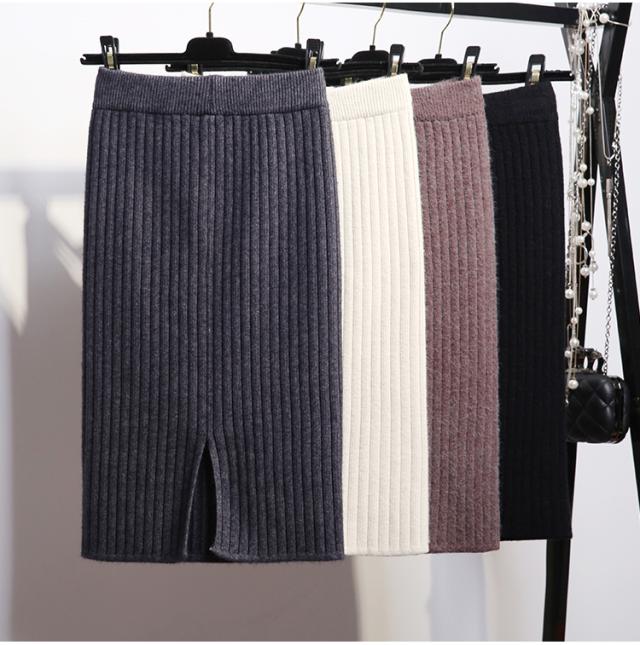 シンプルだけどとってもエレガントなひざ丈ニットスカート。バックスリットが女性らしさをアピール!