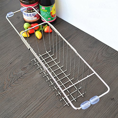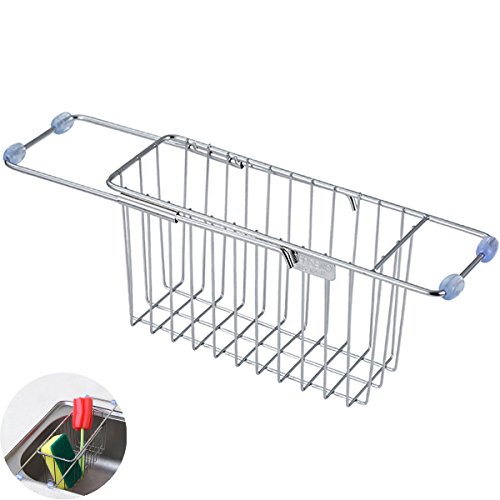Kitchen Sink Caddy,Yoheox Adjustable Stainless Steel Kitchen Sponge Holder Dish Rack Drainer Soap Scrubber Holder For Kitchen Sink Organizer