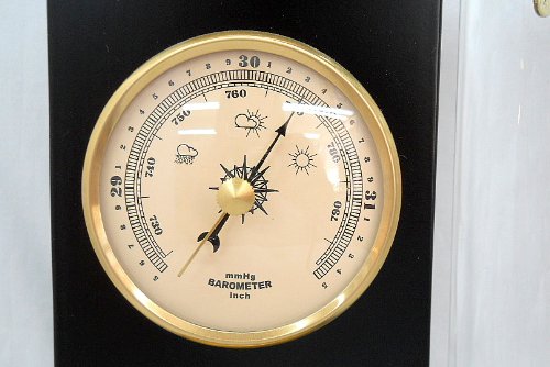 -. Binding : Home -. Brand : Global Village -. Color : Black Wood -. Feature : Thermometer - Clock - Barometer - Hygrometer / Height: 12" Width: 6" / The Barometer measures atmospheric pressure. / The Hygrometer measures moisture content in the air. / WARNING! To avoid inaccurate temperature readings or color fading Galileo Thermometers should not be placed in Direct Sunlight! -. Label : Global Village -. Manufacturer : Global Village -. Model : 558 -. ProductGroup : Home -. ProductTypeName : HOME -. Publisher : Global Village -. Size : Item Box is 14"H x 8"W x 4"D -. Studio : Global Village -. Title : Global Village Galileo Thermometer - Combo Weather Station - Clock, Barometer, Hygrometer - Black Cherry Wood Finish - 12 Inch.