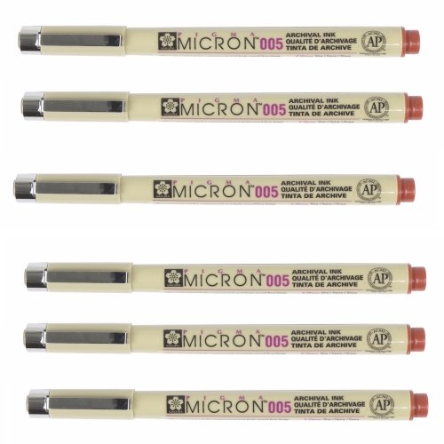 6 Sakura Pigma Micron 005/0.20mm Brown INK Drawing, Writing