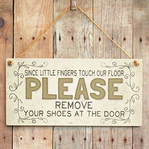 Meijiafei Since little fingers touch our floor please remove your shoes at the door - Cute Country Style Home Accessory Gift Sign For Hallway / Entrance Vestibule 10"x5"