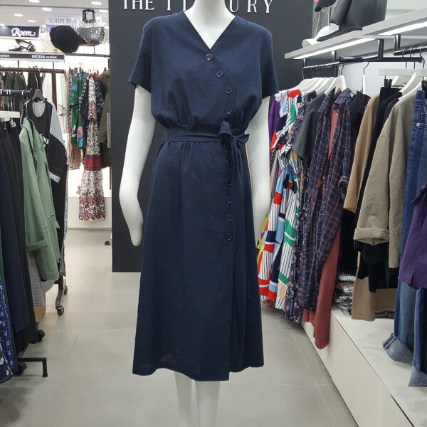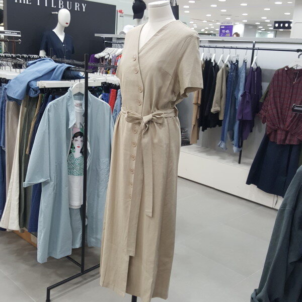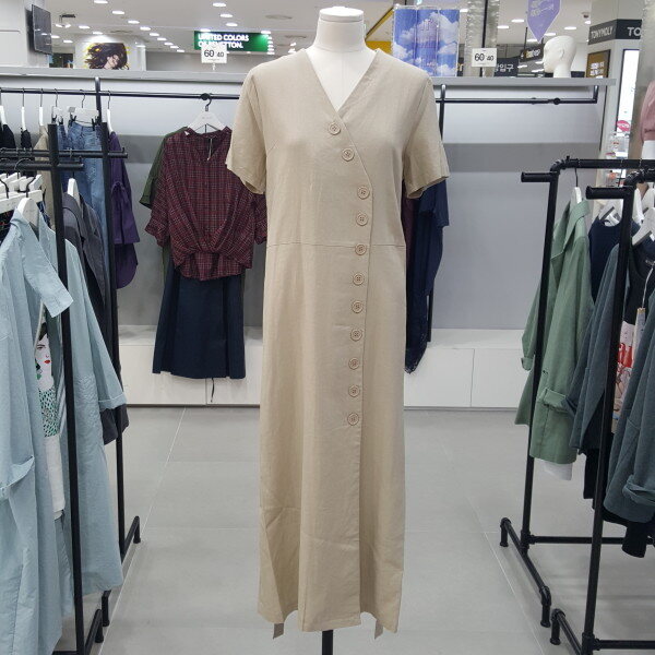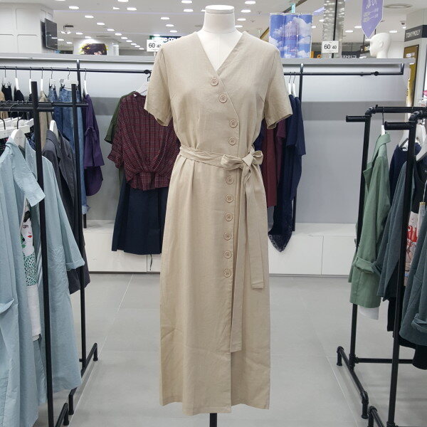 단추 여밈 스타일의 브이넥 원피스입니다 롱 기장에 허리부분 벨트로 슬림하게 라인을 잡아입는 멋스러운 롱 원피스입니다프리사이즈 총길이122가슴단면50