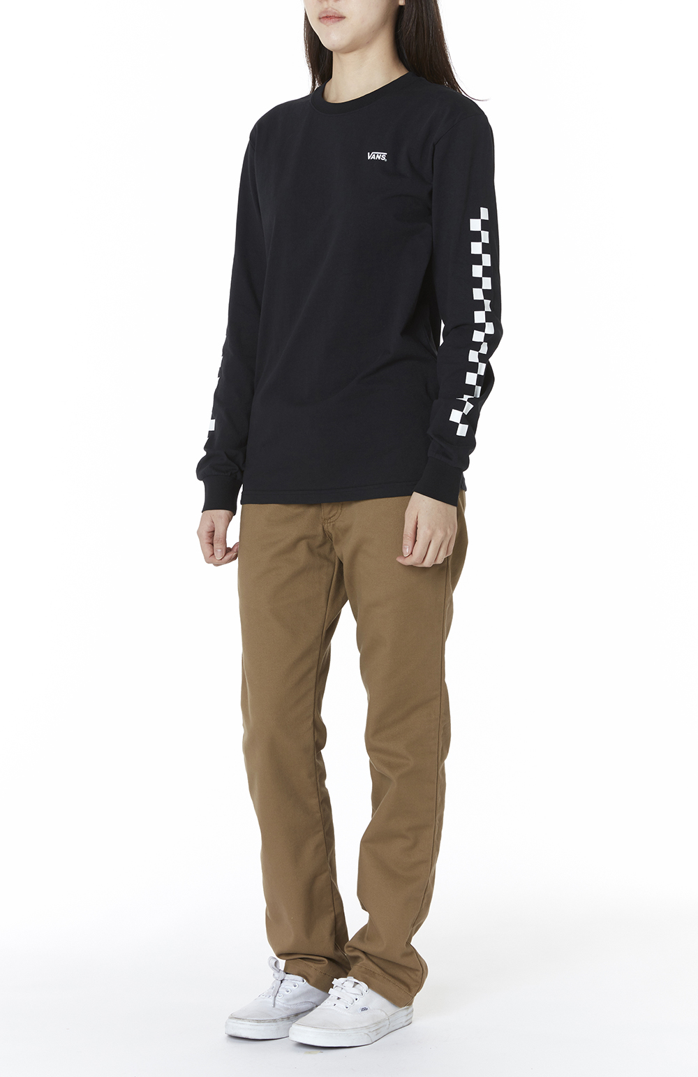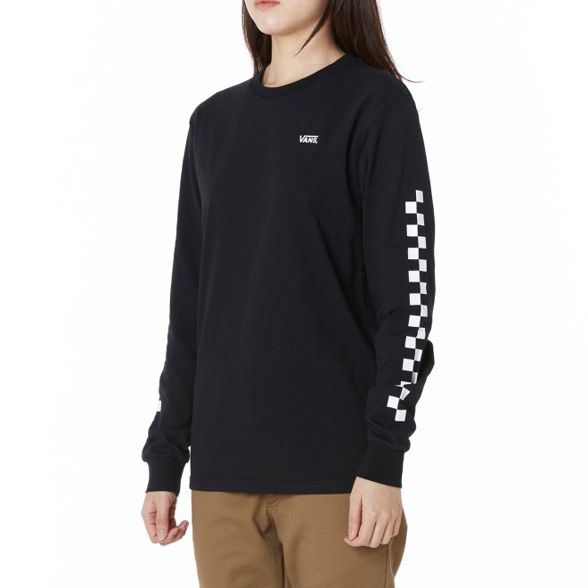 전면과 슬리브 위에 로고를 프린트해 포인트를 준 체커 롱 슬리브 티셔츠입니다.