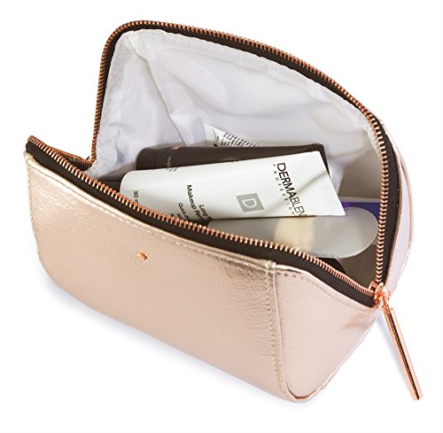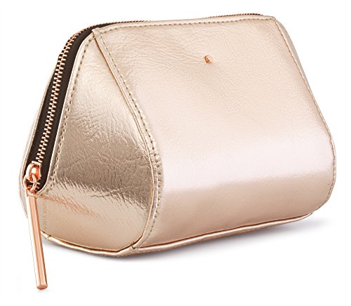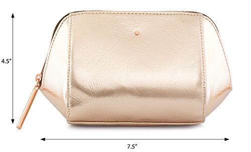 Rose Gold Metallic Cosmetic, Makeup, or Toiletry Bag Pouch for Travel and Organization - Made of Premium Vegan Leather