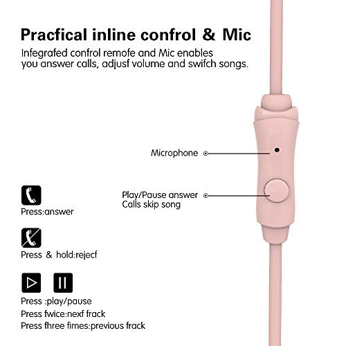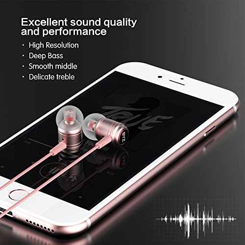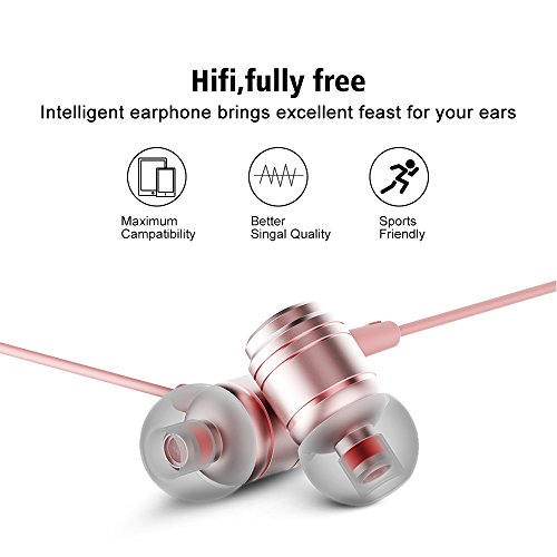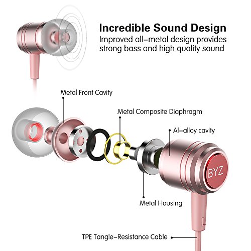 BYZ Earbuds, In-Ear Metal Bass Earphones, with Microphone Noise Isolating Headphones, Comfort Fit for iPhone 6 Samsung Android Smartphones Xbox Laptop iPad (Rose Gold)