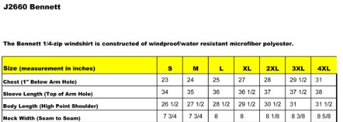Product Description The Bennett 1/4-zip windshirt is constructed of windproof/water resistant microfiber polyester. Handsome details include a white striped rib trim along the inner collar and contrast zippers. Hidden front zippered pockets; piping along raglan sleeves and inner storm flap with chin guard. Solid colored rib cuffs and bottom.Sizes: S; M; L; XL; 2XL; 3XL; 4XL 0