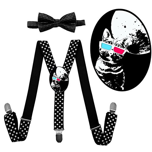 (QZ-Lee)/Accessories/Suspenders Cummerbunds/DIRECT FROM USA/QZ-Lee Thinker Cat Suspender Bow Tie/Unisex Suspender/Adjustable Suspender/Y-Back Suspender