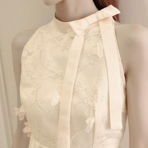 一番目を惹くネックラインに、リボンをつけたデザインも可愛いですね☆