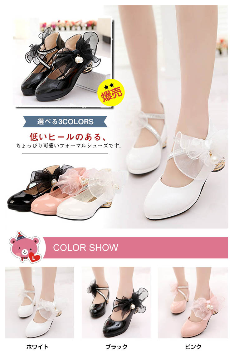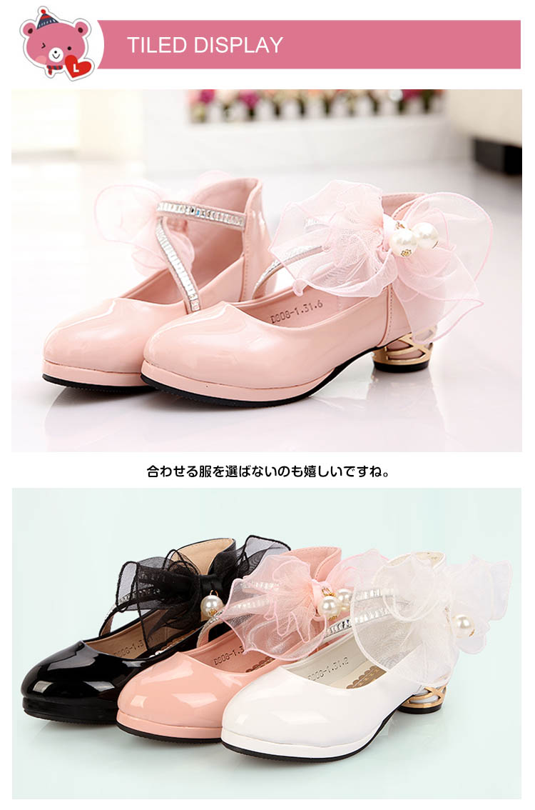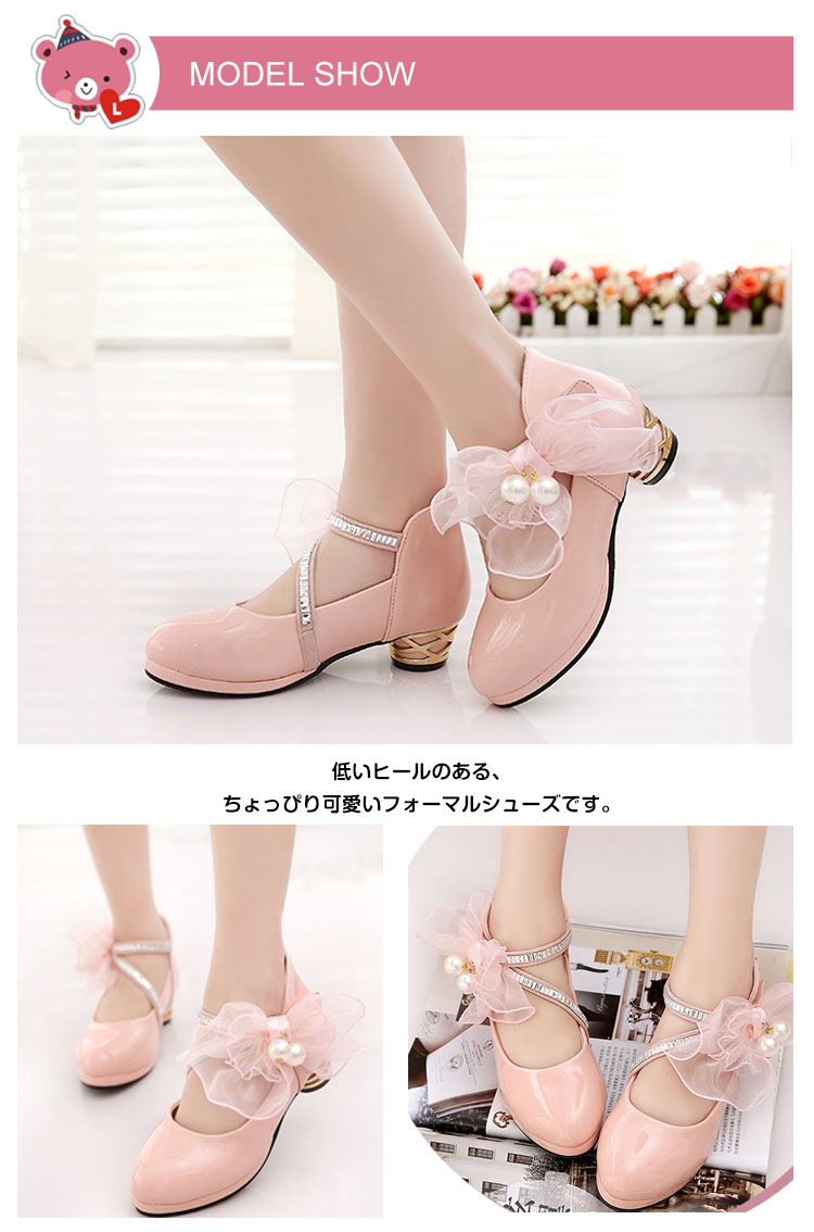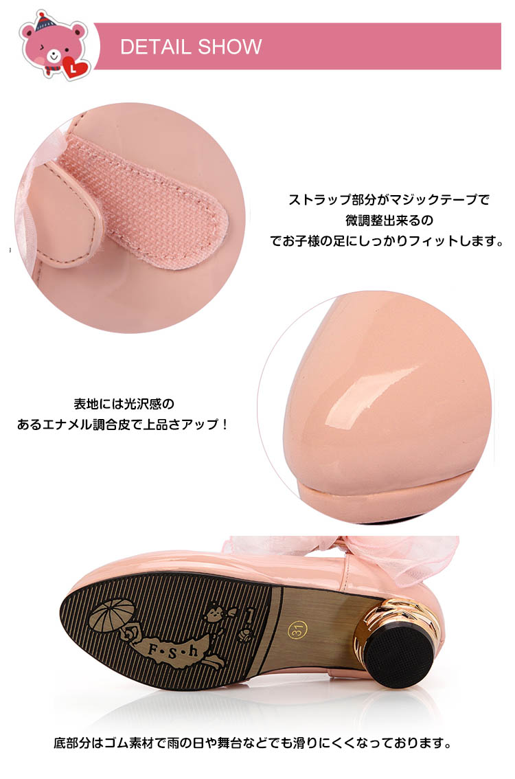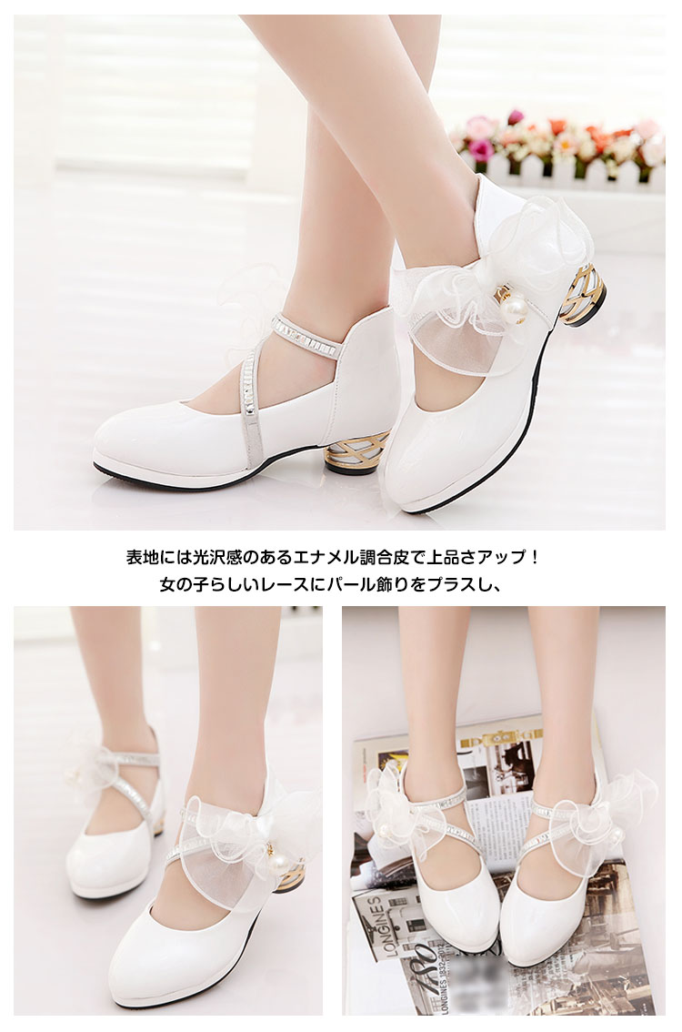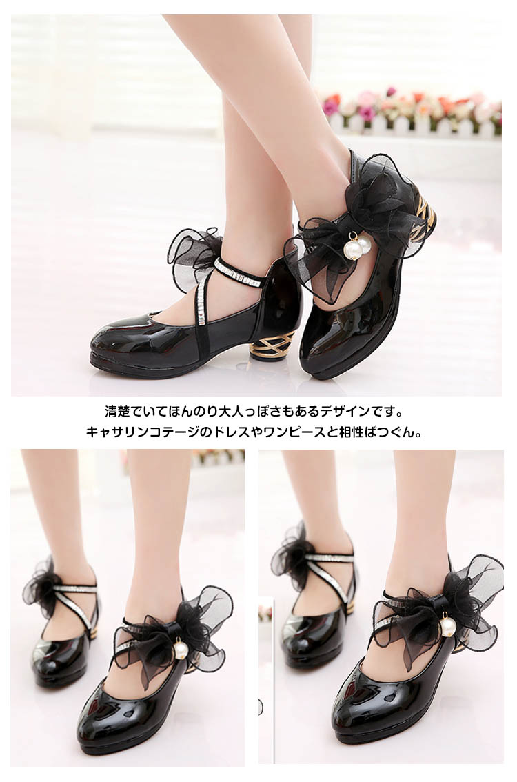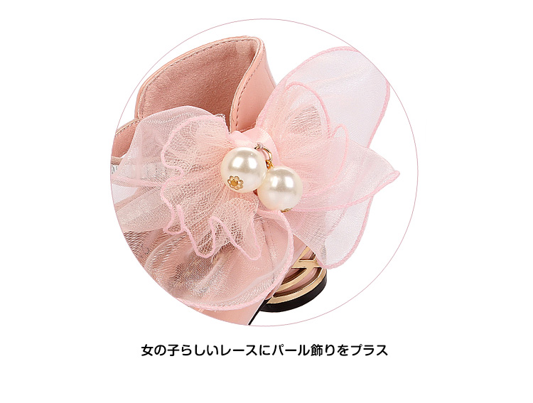 | 低いヒールのある、ちょっぴり可愛いフォーマルシューズです。表地には光沢感のあるエナメル調合皮で上品さアップ!女の子らしいレースにパール飾りをプラスし、清楚でいてほんのり大人っぽさもあるデザインです。キャサリンコテージのドレスやワンピースと相性ばつぐん。合わせる服を選ばないのも嬉しいですね。 | |