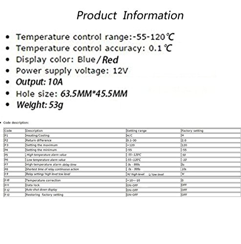 DC 12V Digital LCD Temperature Controller Heating Cooling Thermostat with Probe for Warehouse, Water Heaters, Ovens, Refrigerators Micro-Computer Control