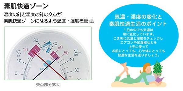 fk094igrjs温度、湿度を管理してお肌にとっても、心や体にとっても快適な生活を送りましょうお肌が喜ぶ環境マニュアル付 サイズ 直径約64×35mm 個装サイズ:9×9×5cm 重量 個装重量:61g 素材・材質 PS樹脂 仕様 置・掛兼用 付属品 お肌がよろこぶ環境づくりマニュアル、取扱説明書、保証書(保証期間:1年間) 製造国 日本 温湿管理でうるるん素肌 ※本製品はお肌の一般的な快適温度湿度をゾーン表示したものですお肌は人それぞれに異なりますスキンケアの目安としてご利用下さい ※本製品の使用に伴って発生した二次災害などについては一切の責任を負えませんのでご了承下さい 温度、湿度を管理してお肌にとっても、心や体にとっても快適な生活を送りましょうお肌が喜ぶ環境マニュアル付