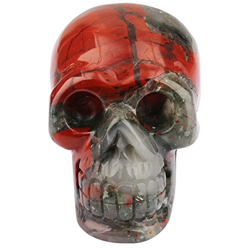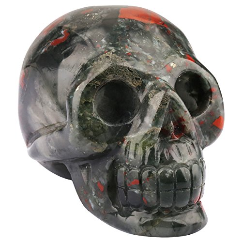 SUNYIK Africa Bloodstone Carving Skull Stone Pocket Statue Figurine Decor 3"