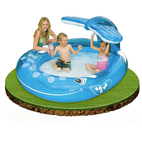 -. Feature : The Intex® Whale Spray Pool provides shade under his tail and a cooling spray / Built-in sprayer plugs into standard garden hose / Pool allows for 7" (18cm) of water / Repair patch included / 82" x 62" x 39" (208cm x 157cm x 99cm) / Ages 3+