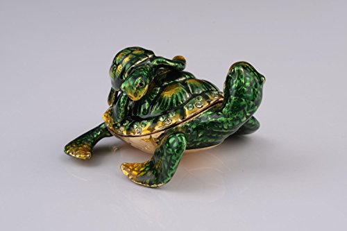 Green Turtle Mother and Son Faberge Styled Trinket Box by Keren Kopal Home Decor Decorative Box