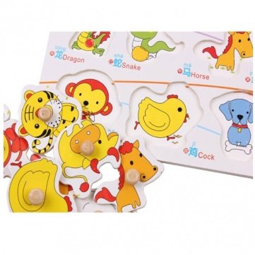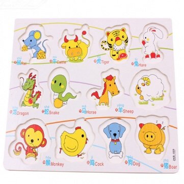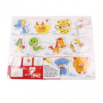-. Feature : Size: 30 * 22 * 0.7 cm To adapt age: >24 month Product material: environmental plywood / Weight: 250g / Package Included:1 x Knob Wooden Chinese Zodiac Animal Cognitive Puzzle
