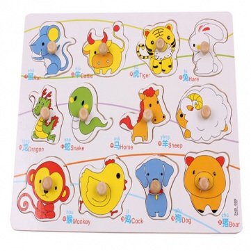 -. Title : Knob Wooden Chinese Zodiac Animal Cognitive Puzzle Kids Education Toy