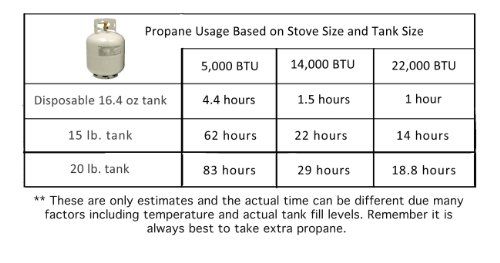 Cooks for up to 5 hours on high heat with one 1-pound can of propane