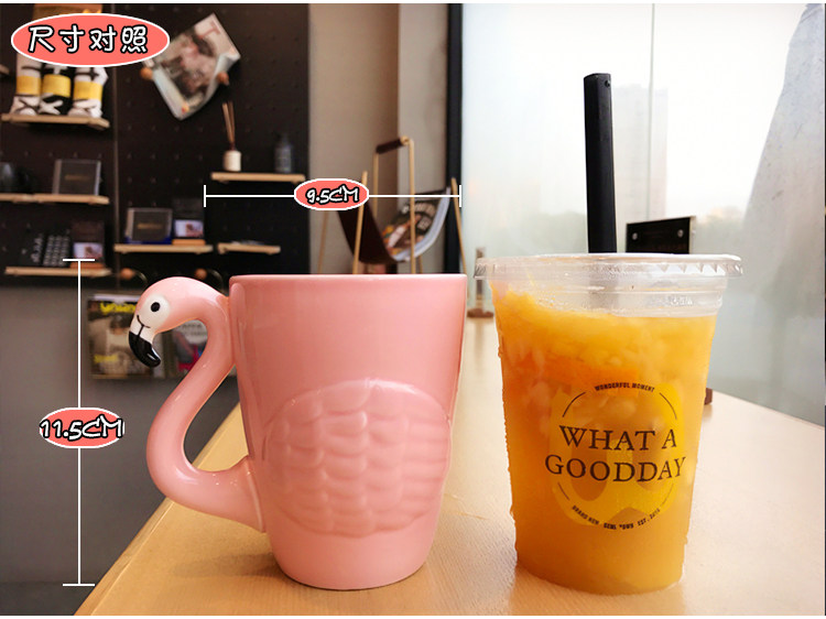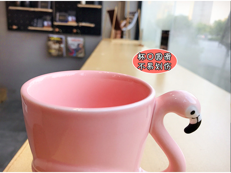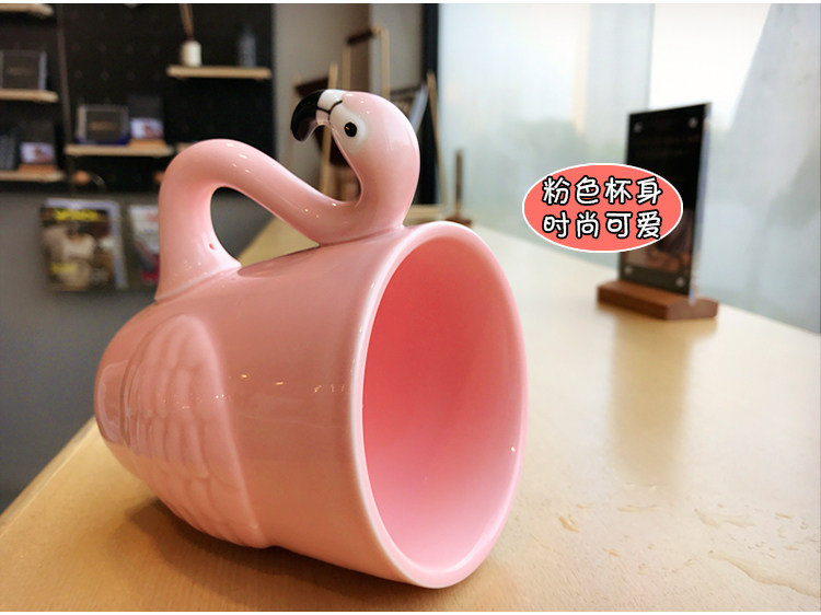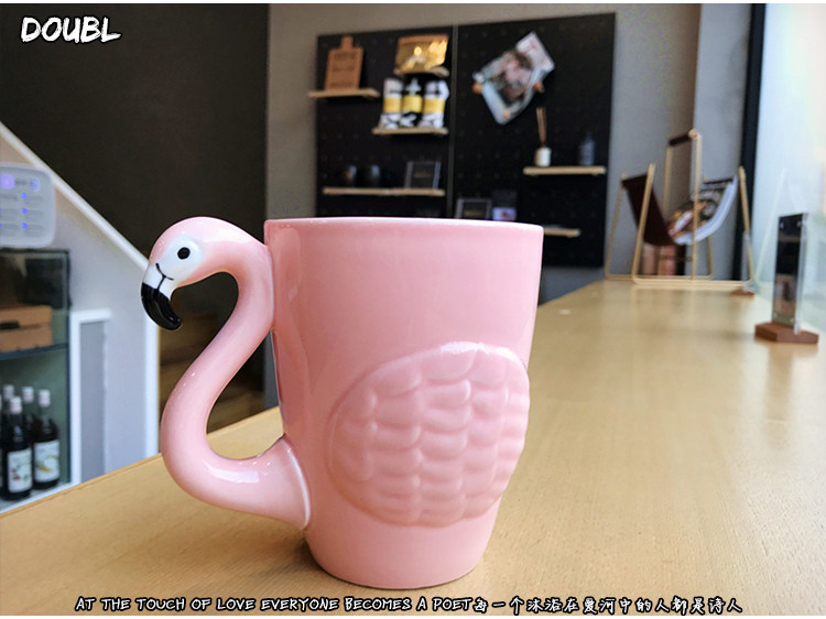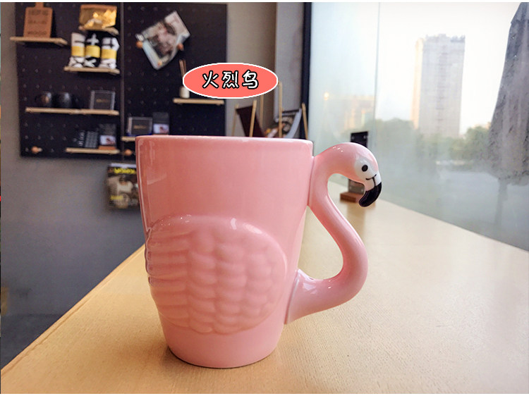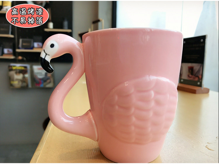 韩版浮雕火烈粉嫩鸟陶瓷水杯子女士可爱卡通早餐牛奶咖啡马克杯子