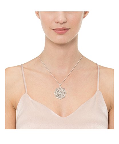 The Sterling Silver Large Filigree Flower Pendant Necklace will deliver metallic elegance and grace to the neckline. Resting from an 18-inch cable chain is a large floral shape crafted in .925 Sterling Silver. The shape is embellished with a chic filigree design granting this pendant a fancy look. A wonderful accessory with casual or formal wear, this pendant will look great with other sterling silver accessories.Feature