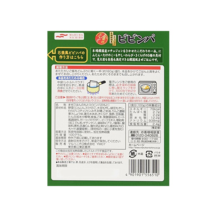 원본상품명: マルハ 金のどんぶり本場韓?産コチュジャンビビンパ 100g×10箱