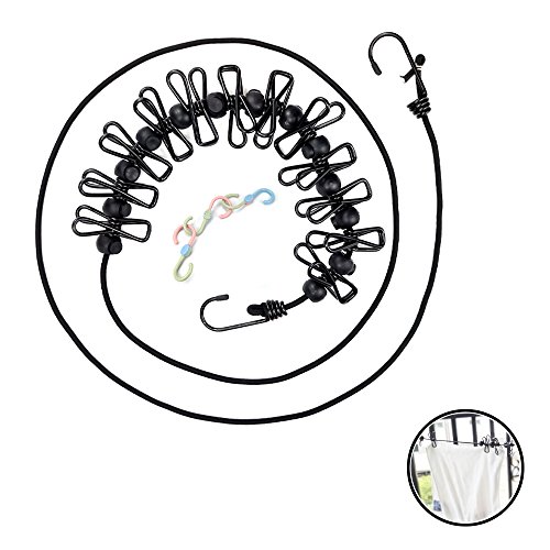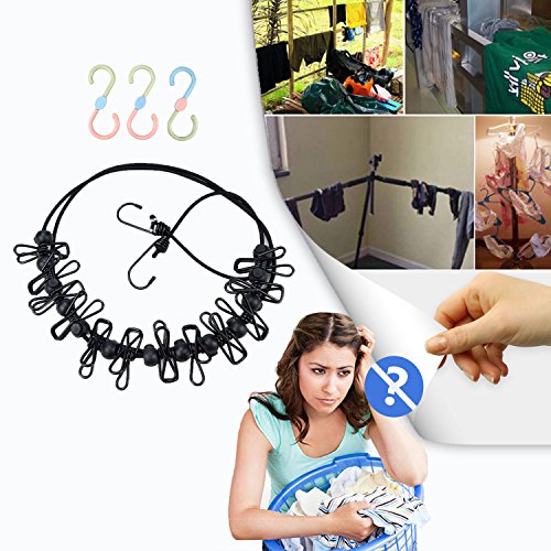 Portable Travel Elastic Clothesline Windbreak Laundry Clothesline Portable Drying Rope Adjustable non - slip Drying Clothes Lines with 12pcs Clothespins for Outdoor and Indoor