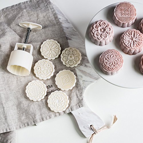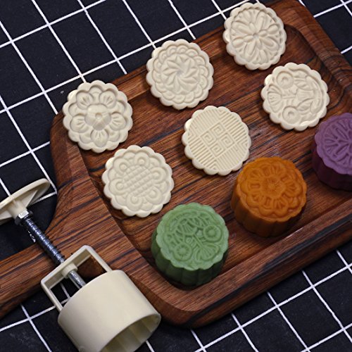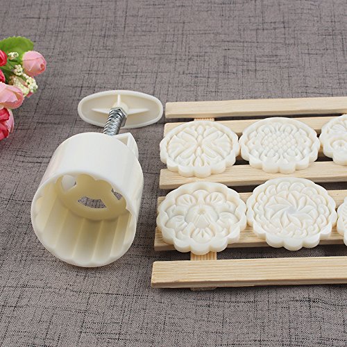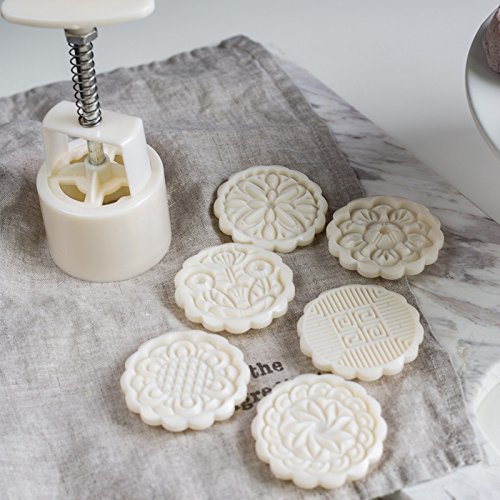 Cookie Stamp Moon Cake Mold with 6 Stamps, Cookie Press Mid Autumn Festival DIY Decoration 75g Press Cake Cutter Mold