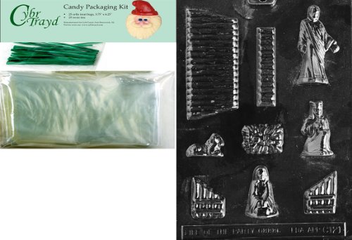 Cybrtrayd MdK25G-C121 Nativity Scene Christmas Chocolate Mold with Packaging Kit, Includes 25 Cello Bags and 25 Green Twist Ties