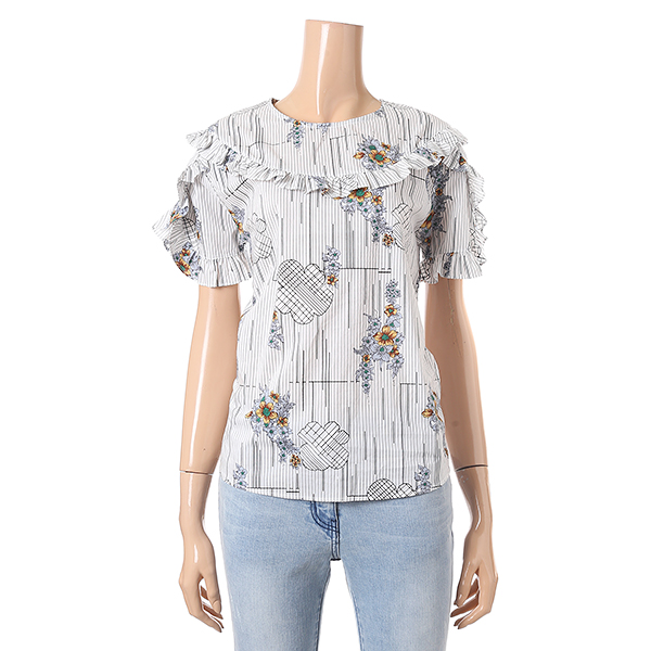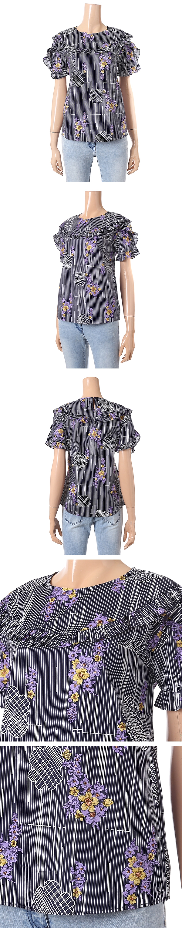 여성스러운 플라워 패턴으로 포인트를 준 시원한 느낌의 블라우스입니다.