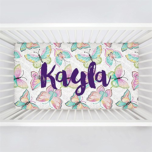 -. Title : Carousel Designs Personalized Custom Bright Damask Butterflies Crib Sheet Kayla Idea
