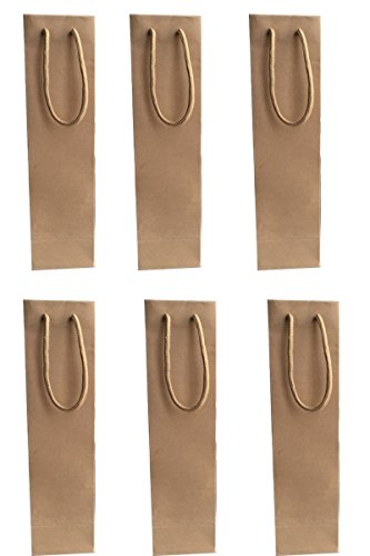 Rhumen 1-Bottle Light Brown Paper White and Red Wine Bag Holder, Pack of 6 (Yellow)