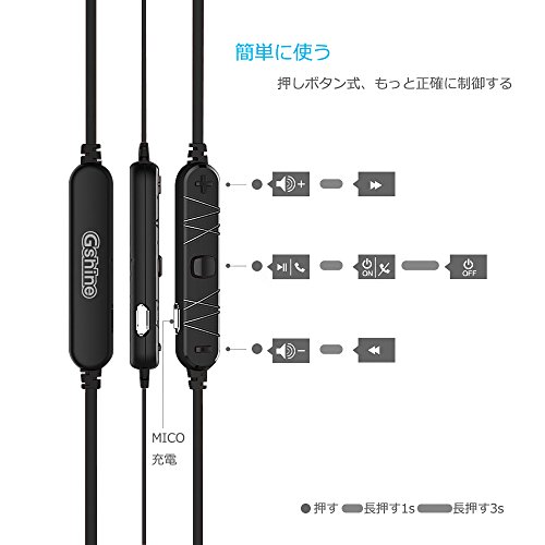 Gshine 블루투스 Bluetooth 이어폰 고음질 wireless 이어폰 CVC6.0노이즈 리덕션 기술 마그넷 탑재 마이크 부착 스포츠 블루투스 이어폰 금속 본체 무게15g