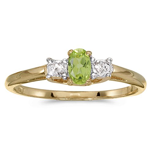 -. Title : 14k Yellow Gold Oval Peridot And Diamond Ring