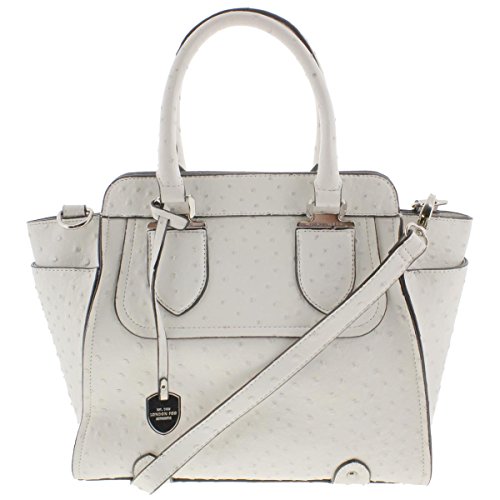 London Fog Womens Faux Leather Ostrich Print Satchel Handbag White Medium