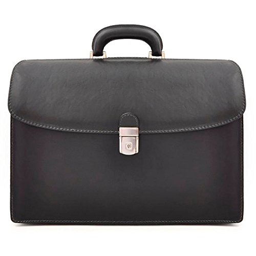 -. Title : Pratesi Mens [Personalized Initials Embossing] Italian Leather Bruce Leonardo Double Sided Lawyers Laptop Briefcase in Cow Leather