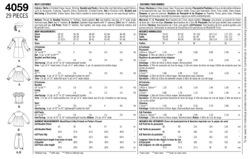 Men costumes in size a (xs-s-m-l-xl) simplicity pattern 4059