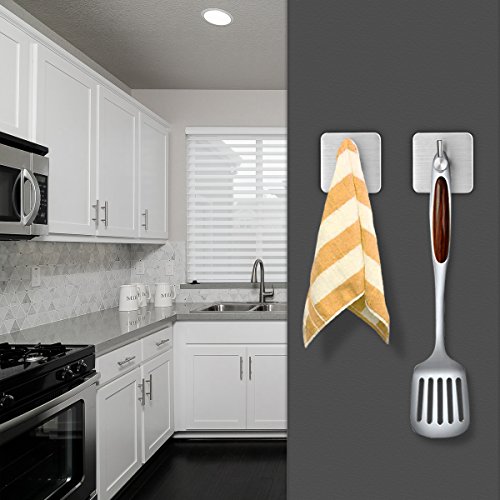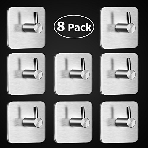 HOMEMAXS 3M Adhesive Hooks Stainless Steel Waterproof Sticky Wall Hooks for Coat Robe Towel Hat Key 8 Pack