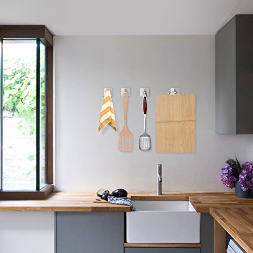 - NO PERFORATION: Due to its strong adhesive sticker, the need for home device drill is therefore not required. No other fixing is also required. These hooks stand for durability and reliability. The hooks are suitable for wood, glass, tiles, bathroom door, latex, kitchen and other smooth flat walls.