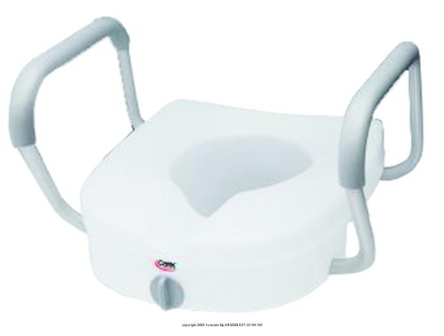 Studio : APEX/CAREX HEALTHCARE Publisher : APEX/CAREX HEALTHCARE Product Description (Item Number and Quantity: UHS-CEXB30400-1EACH) Carex E-Z Lock Raised Toilet Seat with Non-Adjustable Handles, Ez Lok Toilet Seat Raised Dimensions-15.5"W x 17"D x 14.5"H, - (1 EACH, 1 EACH) - Carex E-Z Lock Raised Toilet Seat with Non-Adjustable Handles assists those with bending or sitting difficulties. The easy-to-use locking mechanism secures the raised toilet seat to the toilet bowl. Comes with padded armrests. The smooth contour seat has built-in hand grips for easy handling and is lightweight and easy to clean Recommended Billing Code: 0
