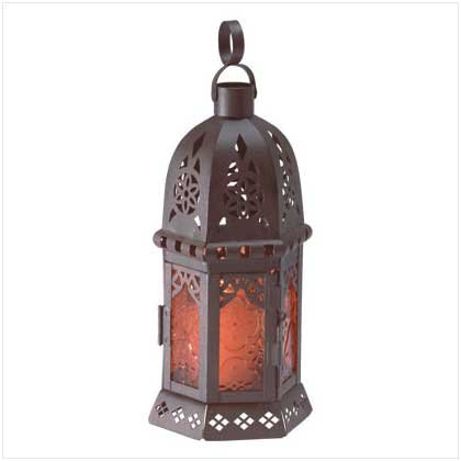 -. Title : Gifts & Decor Moroccan Metal Amber Glass Candleholder Lantern Light