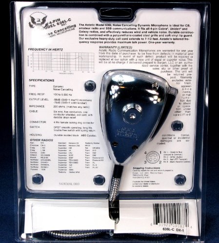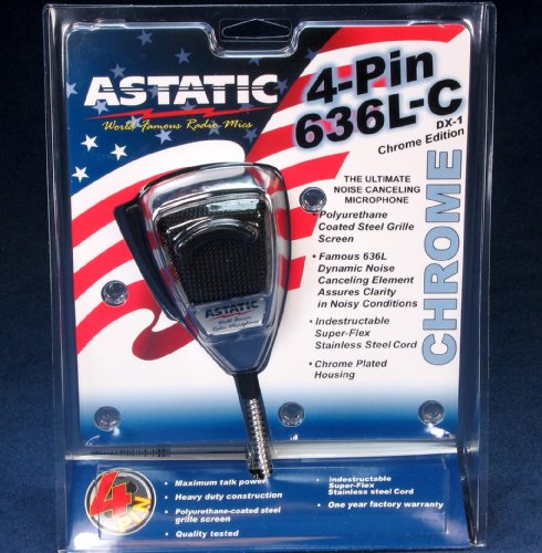 Astatic 636LC Chrome Noise Canceling 4-pin CB Radio Mic