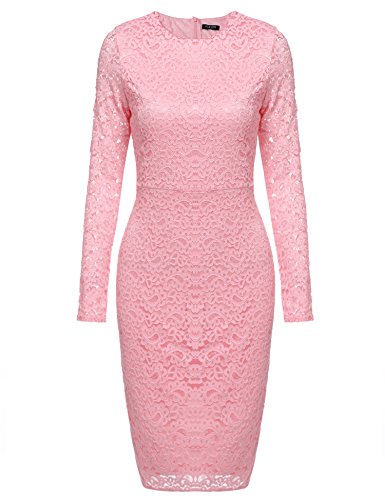 Title : ACEVOG Women Elegant Floral Lace Long Sleeve Slim Evening Dress