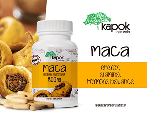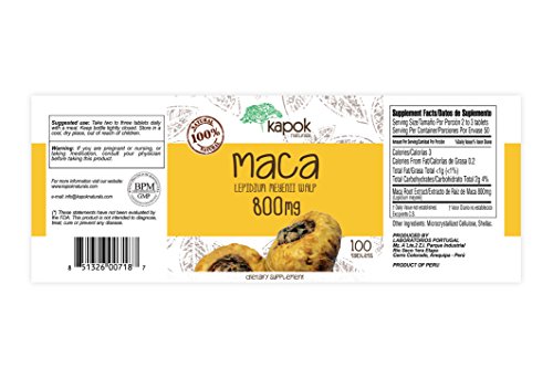 Maca is a radish-like root vegetable that grows in the Andean mountains of Peru at very high altitudes 7,000 - 11,000 feet. Used for over 2000 years by Incans of Peru to provide energy for battle and long distance treks. Our Maca Pills or Maca Root Capsules are for Men and Women. They are a great way to help enhance strength and endurance. Our Raw Maca Root Powder comes directly from the finest sources in the Peruvian Andes. Kapok's Maca acts as an Adaptogen or Adaptogenic herb that is rich in vitamin B, vitamin C, and vitamin E. It provides plenty of calcium, zinc, iron, magnesium, phosphorous as well as 19 amino acids. The part of the maca that holds the active nutrients is the flesh of its root. The nutritional contents of the maca root are impressive. The root or tuber is high in protein, natural sugars, iron, potassium, iodine, magnesium, calcium, and fiber. Due to maca's high nutritional content, it is often referred to as having "superfood" properties. These Organic Maca Vitamins made from Maca Pure Extract act as antioxidants, they balance cholesterol, and boosts libido and promotes sexual function in both men and women. Maca root has been shown to be beneficial for all sorts of hormonal problems including PMS, menopause, and hot flashes. It is also a fertility enhancer and is best known for improving libido and sexual function, especially in men. For this reason, it's earned the nickname "nature's Viagra."Feature