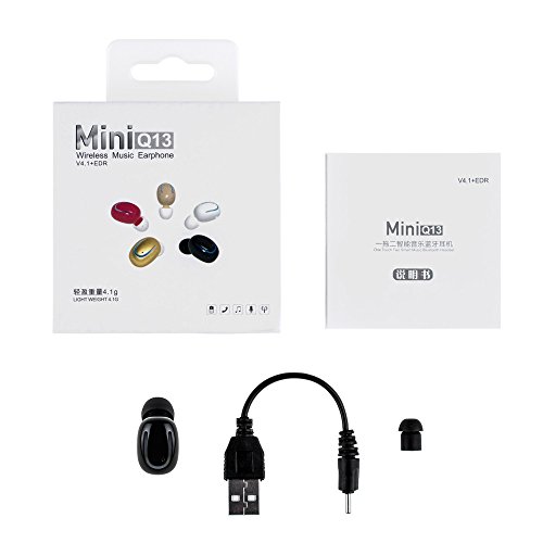Longer music/talk time: the Q13 wireless earpiece with built-in rechargeable lithium-poly 60mAh battery, last for 6 hours of audio playtime under 60% volume, 7 hours talk time, 1.5-2 hours charging time(Only one earpiece)
