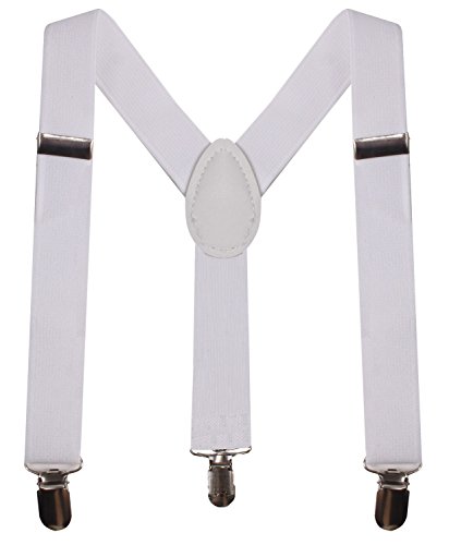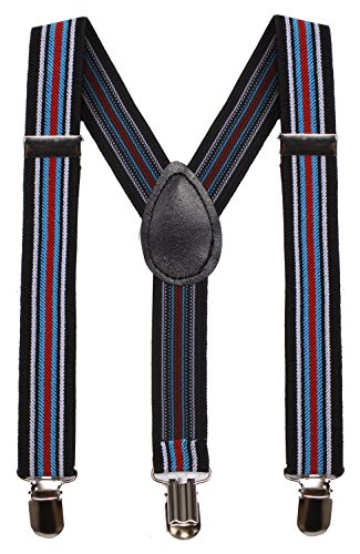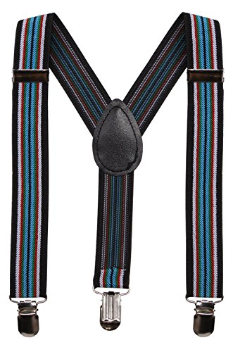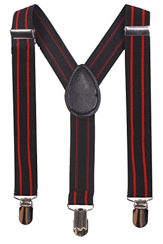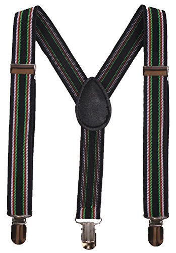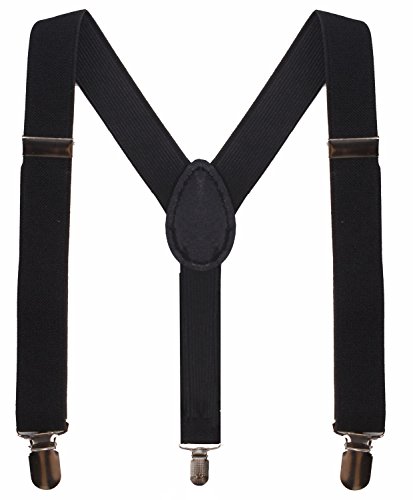 MATERIAL &SIZE: BODY STRENTH black suspenders made by 75% polyester 25 % elastodiene, our child suspenders have the strong metal clips. And they are adjustable, one size fits all, up to 25",width 0.98" , suitable for babies, toddlers, kids, teens, boys and girls also perfect dress suspenders.