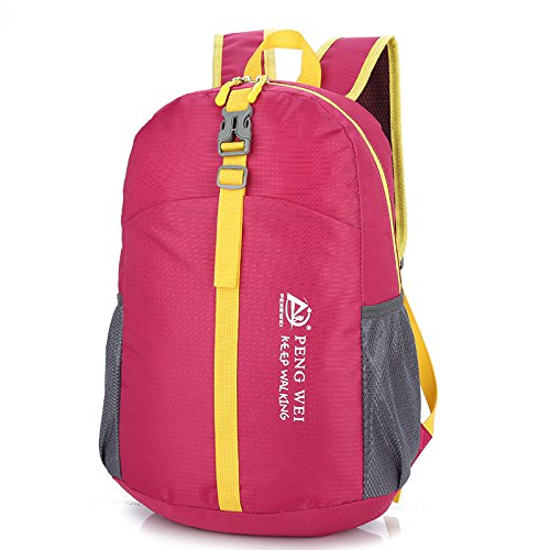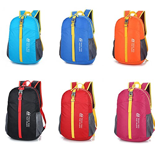 -. Feature : Made from Nyloncloth,lightweight,high tear resistant,water-resistant,rain-resistant / Compact Design: fold into zippered inner pocket, then it becomes a small bag, portable to carry on; unfold from pocket to backpack, you can put all your stuffs into it nicely. / Backpack Main pocket is Large enough to carry what you want to put into.Two sides mesh pockets for water bottles or umbrellas. / Multiple Usages: use it as a carry on for your excess baggage, perfect for day trips, vacation, travel, school, hiking, camping, climbing, shopping etc. / Special Shoulder Straps: mesh shoulder straps make it more ventilated, no need to worry about sweat, you will feel cooler. Adjustable shoulder straps make it easy to adjust the length.