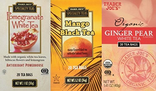 -. Title : Trader Joes three tea Variety Bundle , Pomegranate White, Mango Black , Ginger Pear