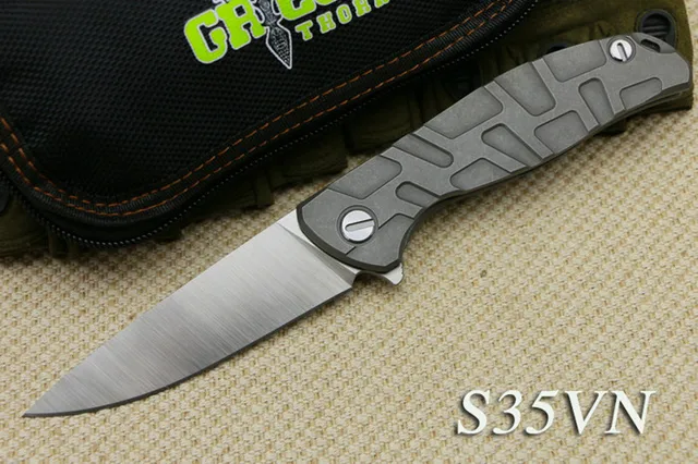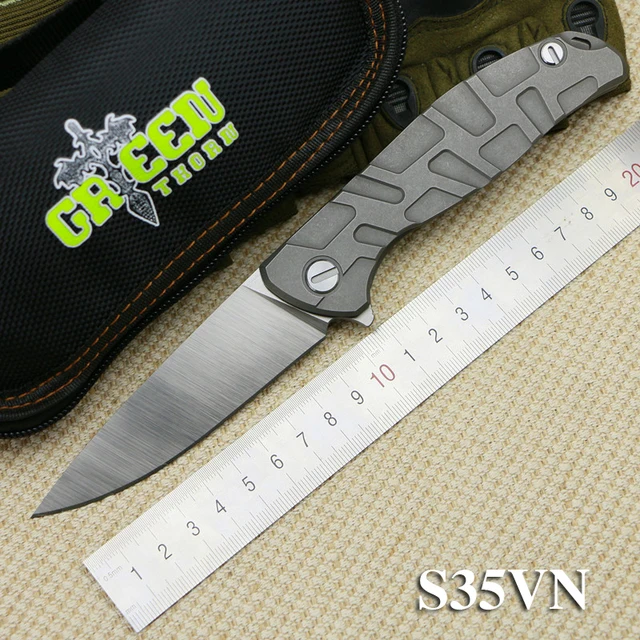 | [해외] 녹색 가시 F95 플리퍼 접는 칼 베어링 S35VN 블레이드 TC4 티타늄 핸들 야외 캠핑 사냥 포켓 과일 나이프 EDC 도구 |