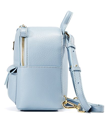 A fashion collection of women backpack, made of high grade natural texture litchi grain genuine leather, which feels luxury, soft and comfortable. It's also a brilliant organizer, multifunctional with 1 external zipper pocket, 1 interior main pocket, 1 interior zipper pocket and 1 interior slit pocket, which can keep your iPad mini, umbrella, bottle, phone, wallet and other daily necessities well organized. Dimensions: 5.9"L x 4.33"W x 8.27"H, big enough for your all daily outfits (can not put in iPad), and it is just the perfect size as a casual mini backpack.